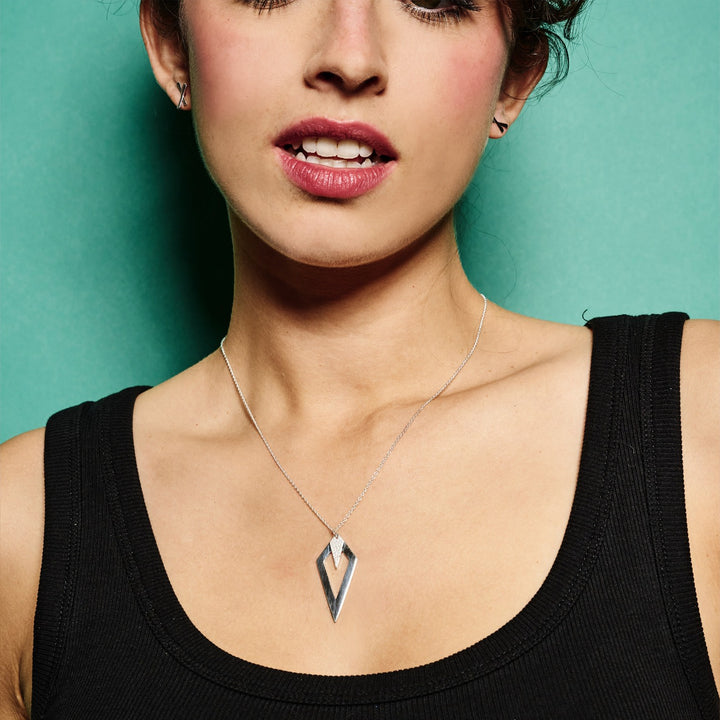 This Arrowhead Pendant Necklace - Sterling Silver by Toolally is a chic and modern take on a classic symbol. The arrowhead pendant is cast in recycled sterling silver and features a sparkling pavé element that catches the light, adding a touch of brilliance to the design. This necklace is a versatile and stylish piece that is designed to be cherished for a lifetime.
