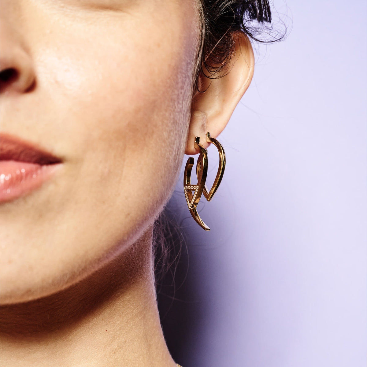 These Loop Earrings - Gold by Toolally are a unique and elegant take on the classic hoop earring. Cast in recycled sterling silver and plated in 18-karat gold vermeil, these beauties are a stylish and timeless staple that can be worn alone for a chic look or stacked for a bold, head-turning effect.