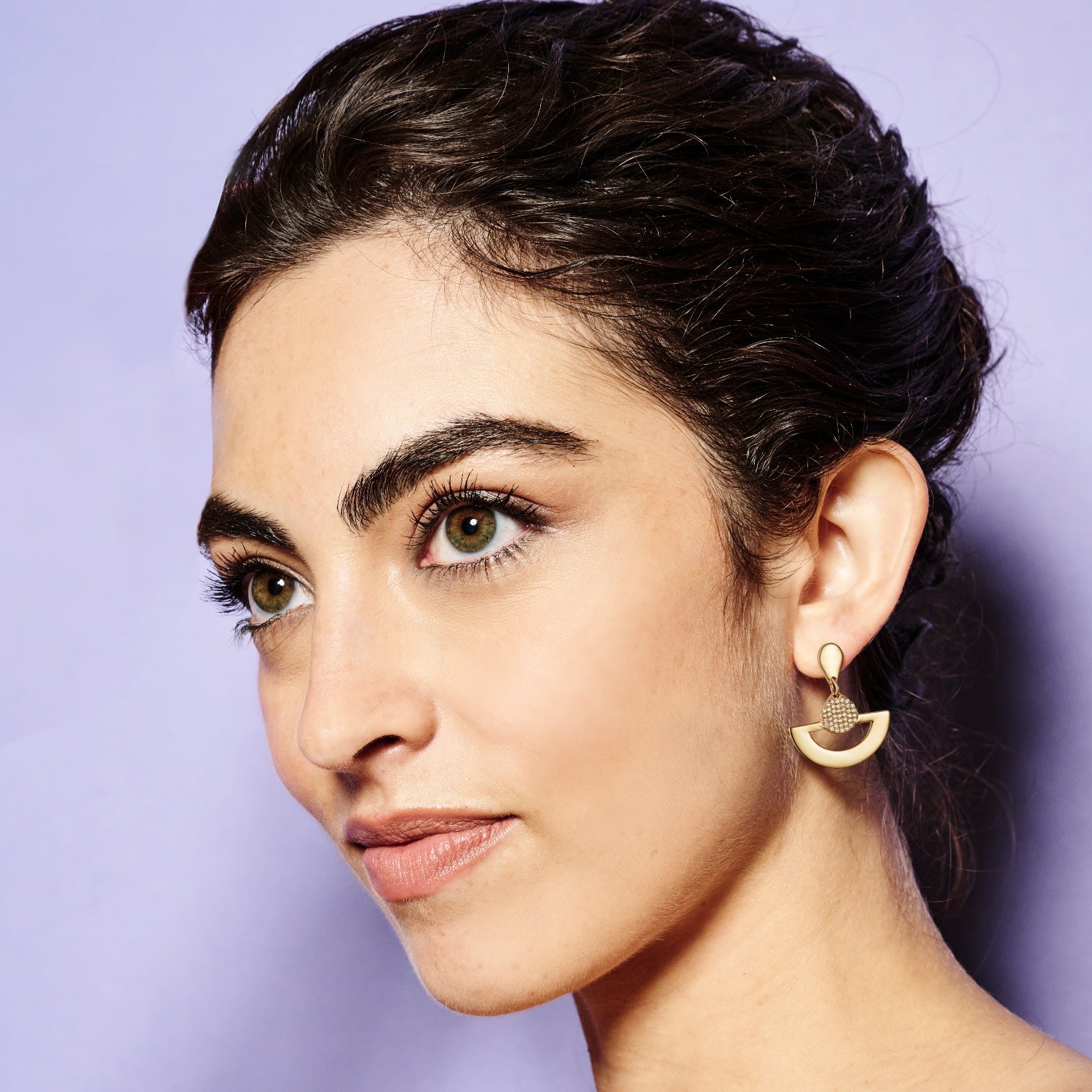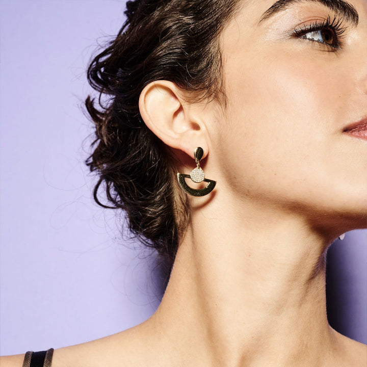 These earrings are cast in recycled 925 sterling silver and plated in 3 microns of 18-karat gold. They feature a sparkling pavé element.