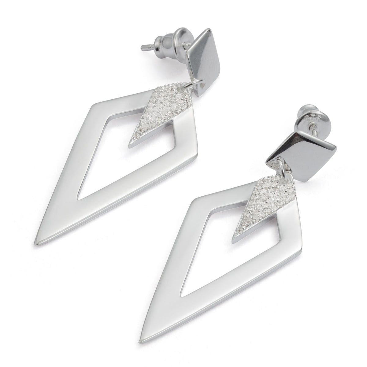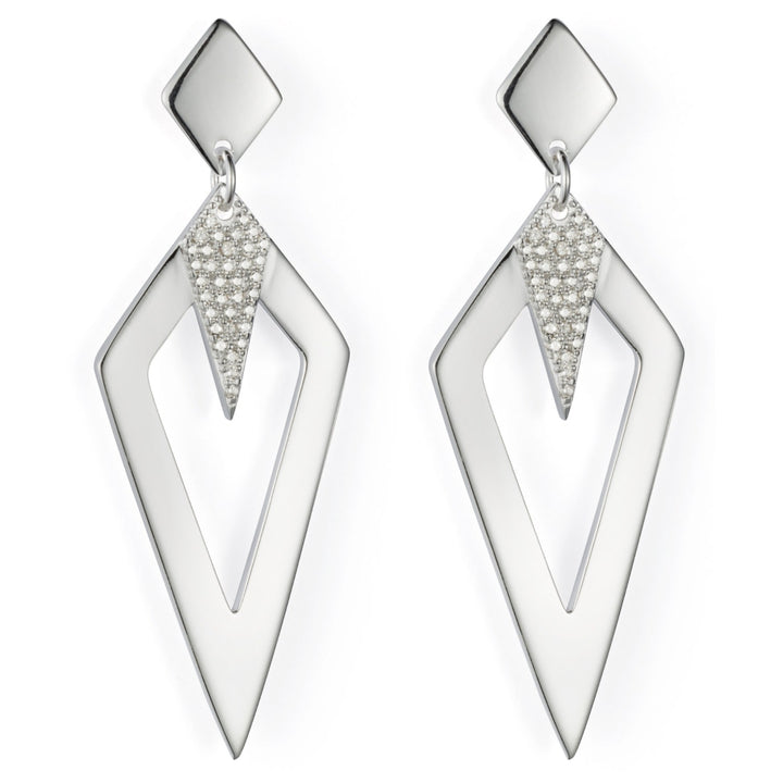 These drop earrings are crafted from solid 925 sterling silver and feature a pavé central element.