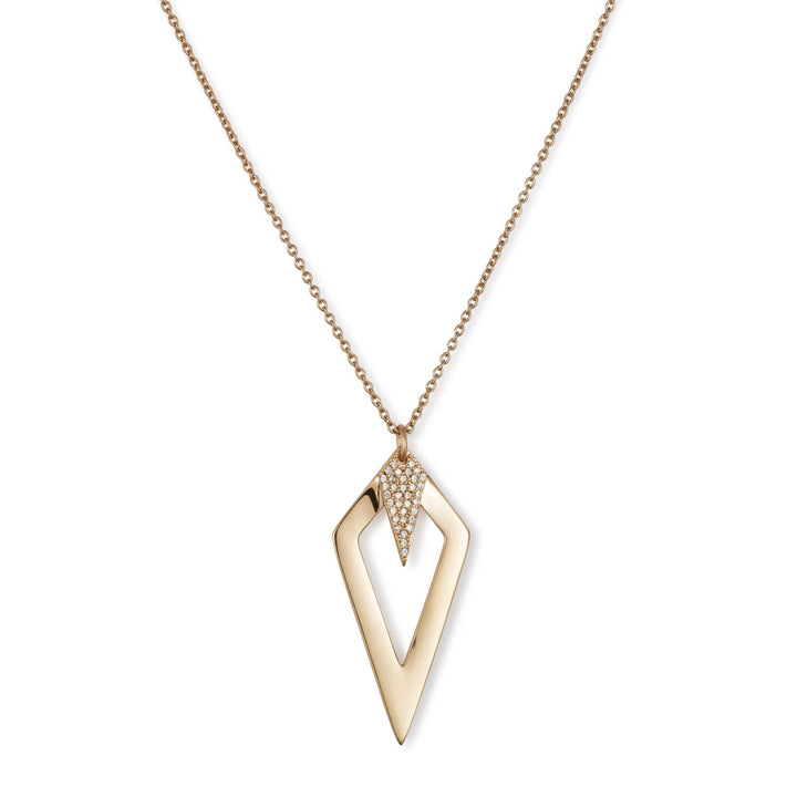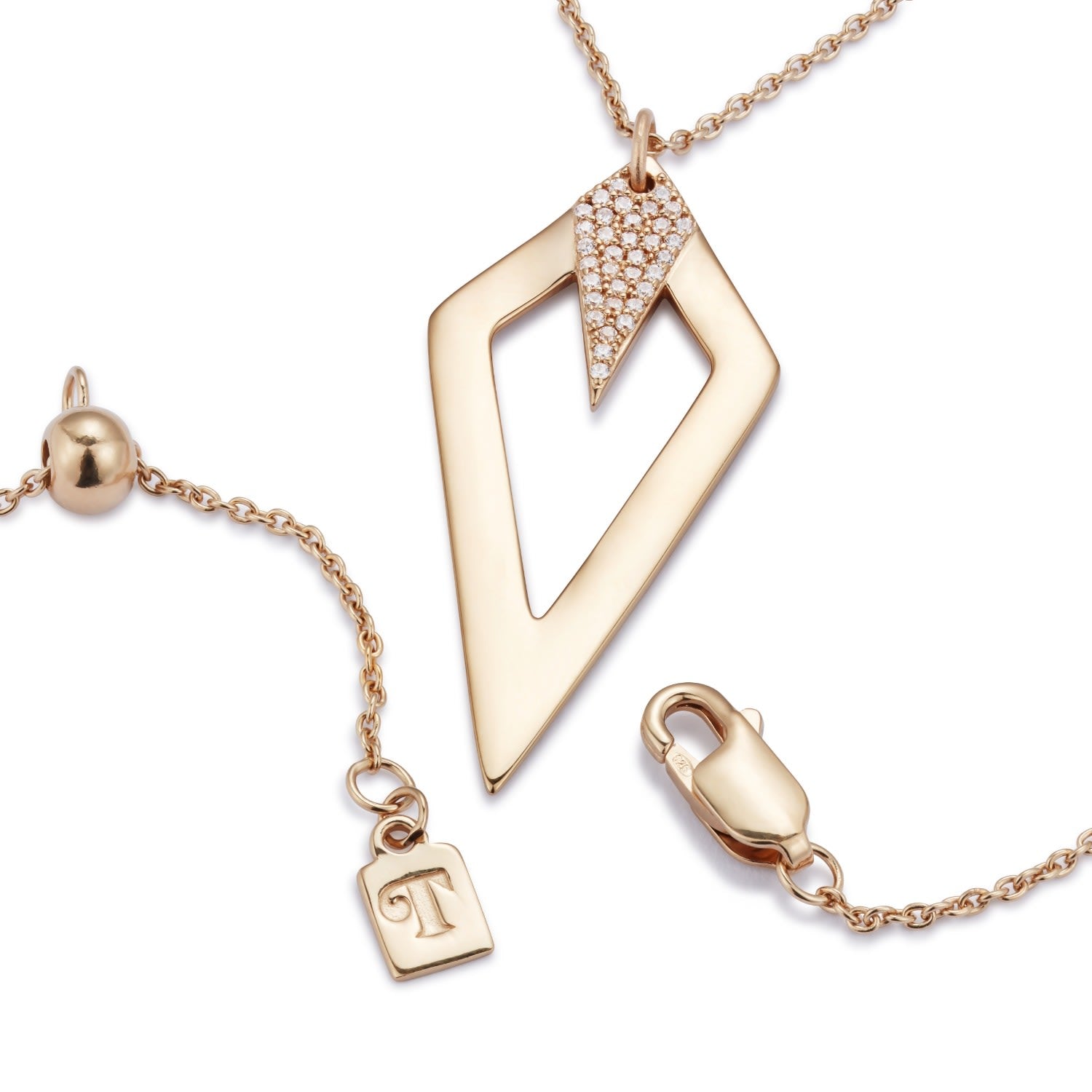 The Arrowhead Pendant Necklace - Gold by Toolally is a fabulous makeover of a popular style. This necklace is cast in recycled 925 sterling silver and plated in 18ct gold (3 microns) for a beautiful, long-lasting finish. It features a sparkling pavé element in the center to catch the light and add extra sparkle.