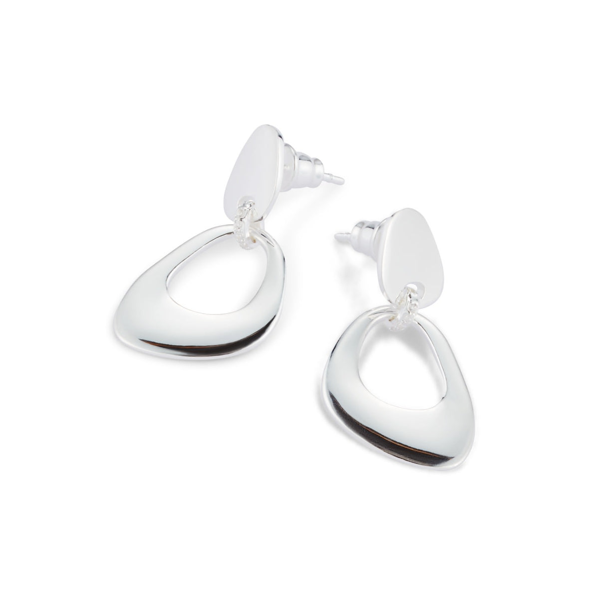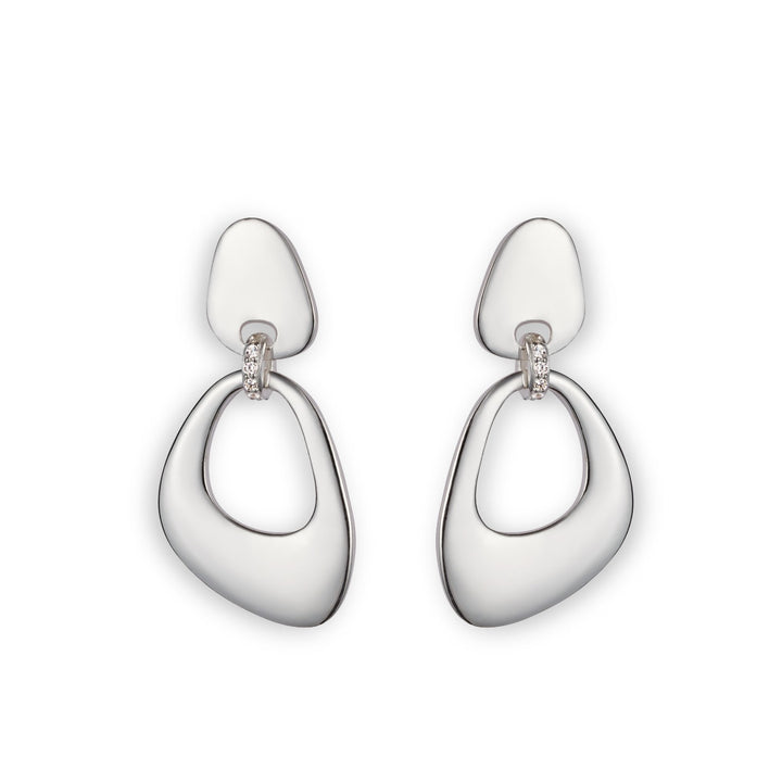 The Pebble Drop Earrings - Sterling Silver by Toolally are a popular and stylish accessory. This updated version features beautiful precious metals and a flash of sparkle from a cubic zirconia pavé element. Made of 925 sterling silver, these pebble-shaped earrings are perfect for catching the light.