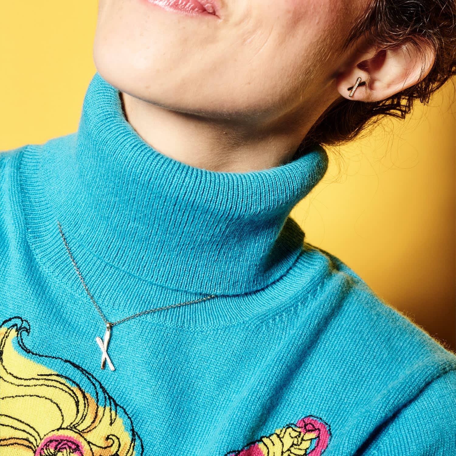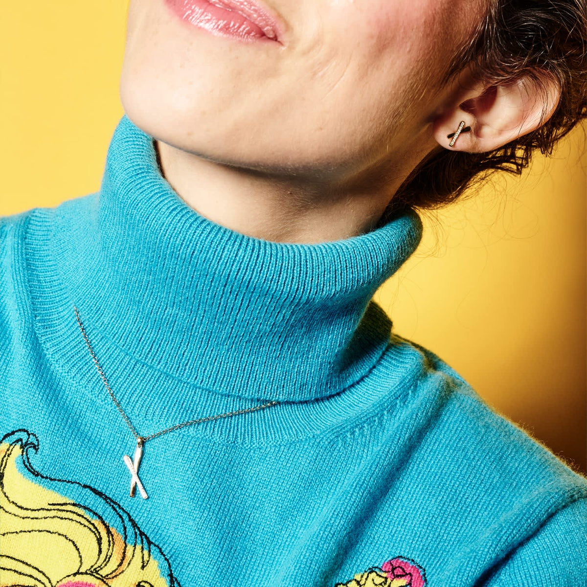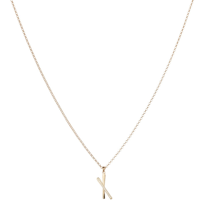 The Snow Kiss Pendant Necklace - Gold Vermeil & Cubic Zirconia by Toolally is an elegant and delicate pendant necklace inspired by Alpine holidays. It is crafted with gold vermeil and features cubic zirconia. The design resembles skis stuck in the snow, giving it a special significance to those who appreciate the imagery.