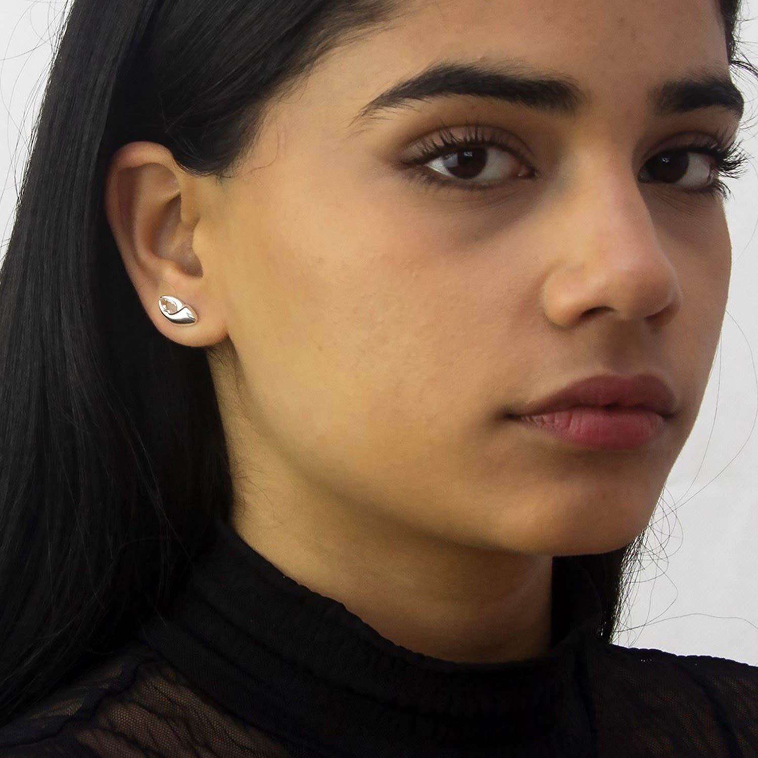 This is a single stud earring crafted from solid sterling silver.