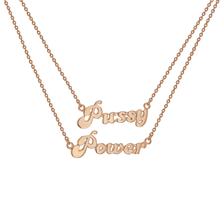 This necklace is cast in sterling silver and 18-karat rose gold plated.