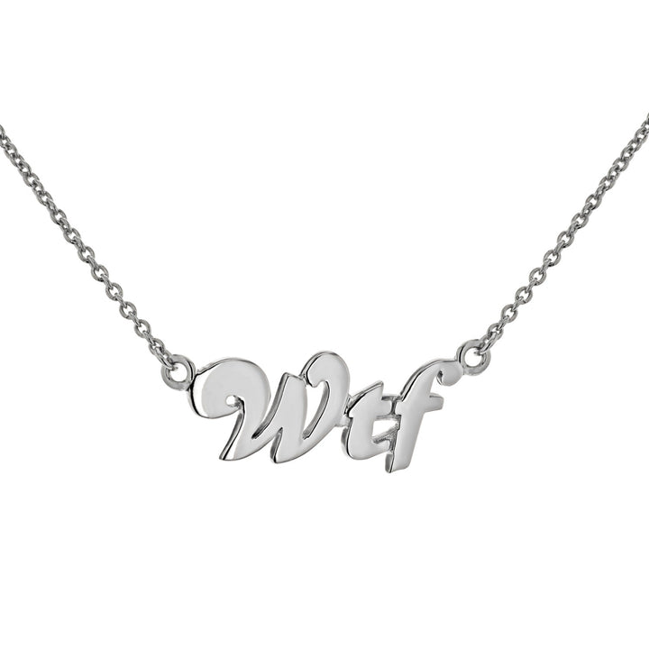 This Wtf Necklace by True Rocks is a statement piece for those who want to express their unique style. The necklace features a "Wtf" pendant, cast in rhodium-plated sterling silver, and is attached to an adjustable sterling silver fine chain. It's an original and bold accessory that's perfect for making a statement with a touch of wit.