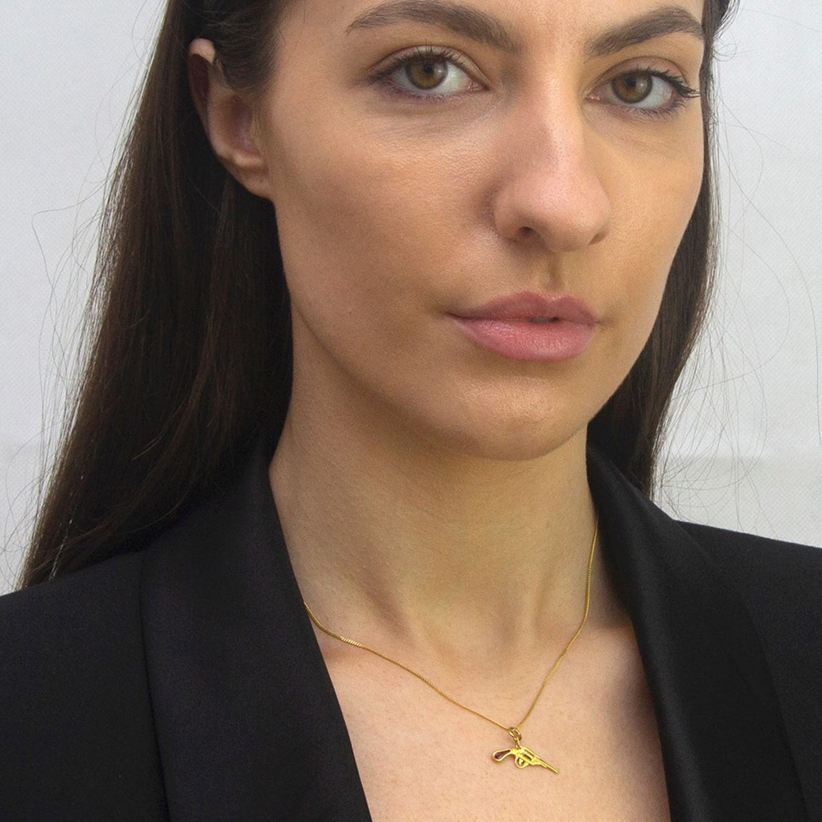 This 18Kt Gold Plated & Red Enamel Mini Retro Pistol Pendant by True Rocks is a unique and edgy accessory. The pendant, a mini retro pistol, is cast in sterling silver with an 18k gold-plated finish and a translucent red enamel overlay. It hangs on an adjustable fine chain and can also be worn on a hoop earring, offering a rebellious and versatile addition to your jewelry collection.