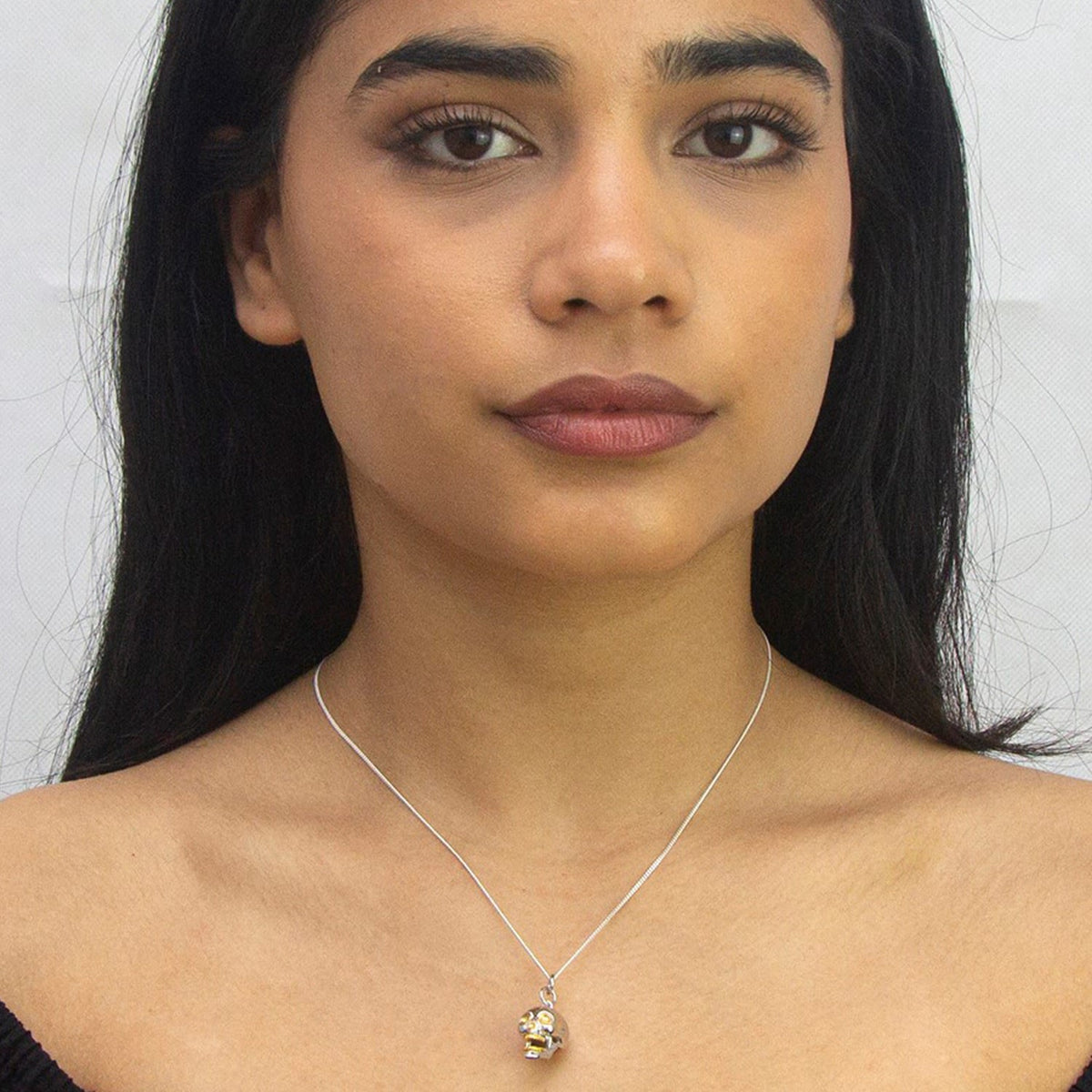 2 Tone Sterling Silver & Gold Plated Mini Skull Pendant