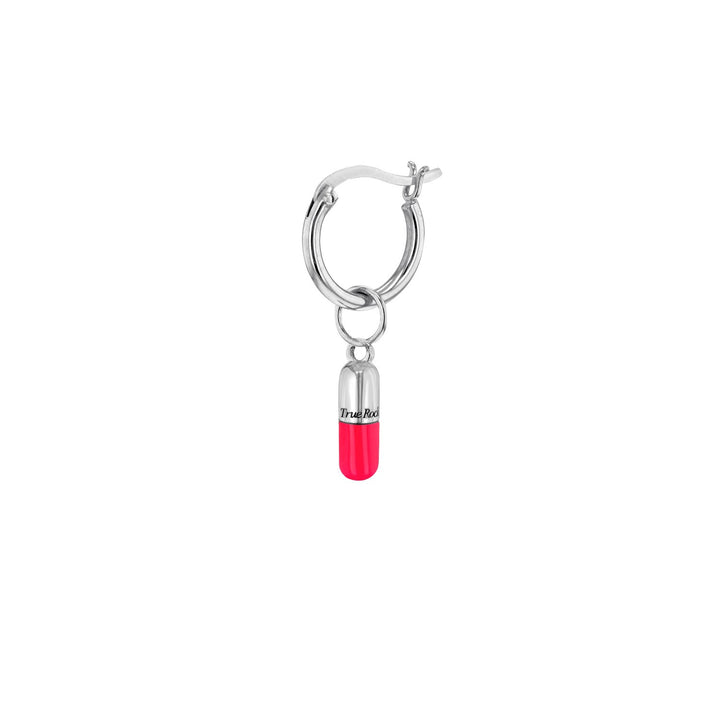 This Neon Pink & Sterling Silver Mini Pill Pendant by True Rocks is a bold and vibrant statement piece. Cast in solid sterling silver and overlaid with a striking neon pink enamel, this pill pendant is a playful and audacious accessory. It's a fantastic choice for those who want to express their unique personality with a pop of color and a touch of rebellion.