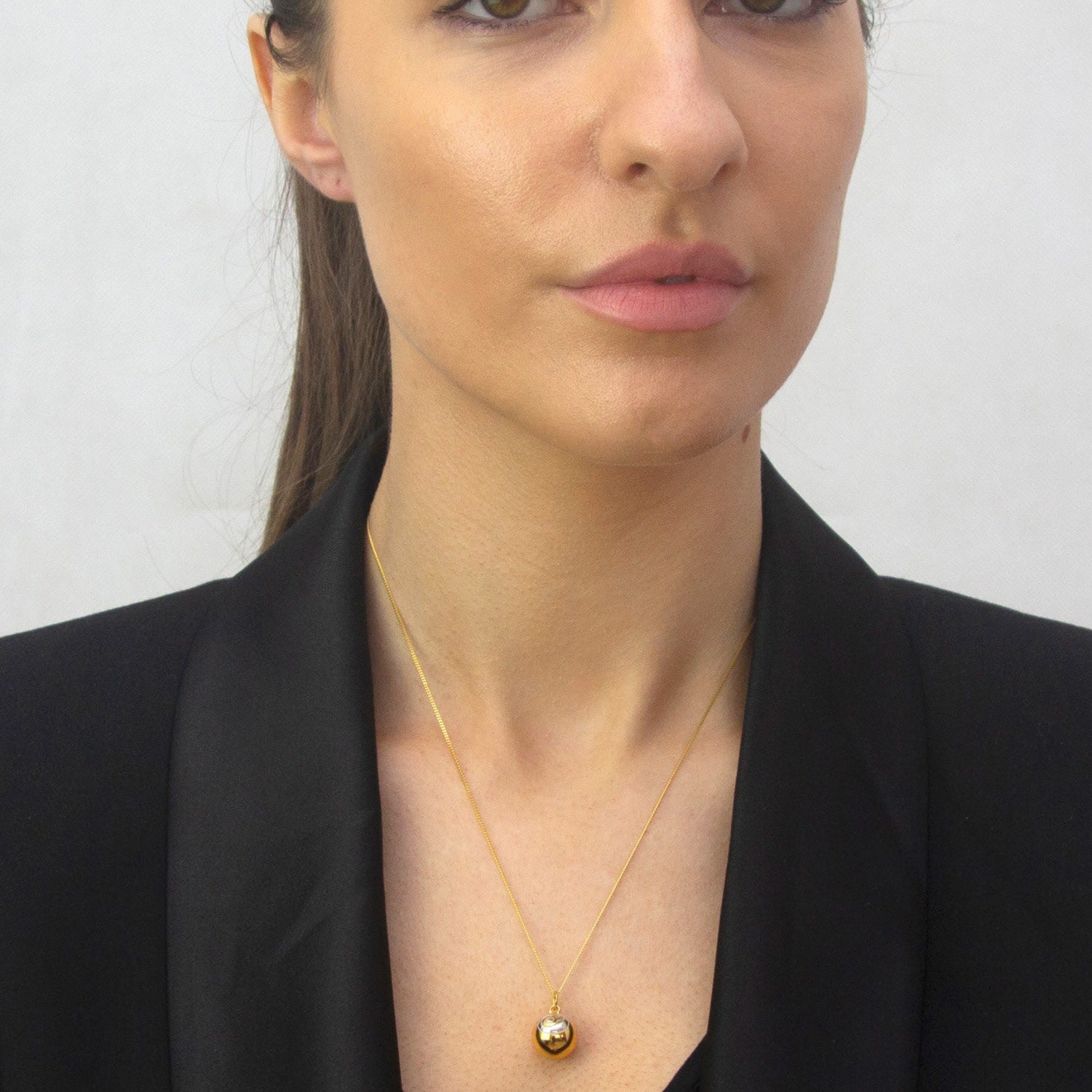 8 Ball Pendant 2Tone Sterling Silver & 18Kt Gold Plated On Gold Chain