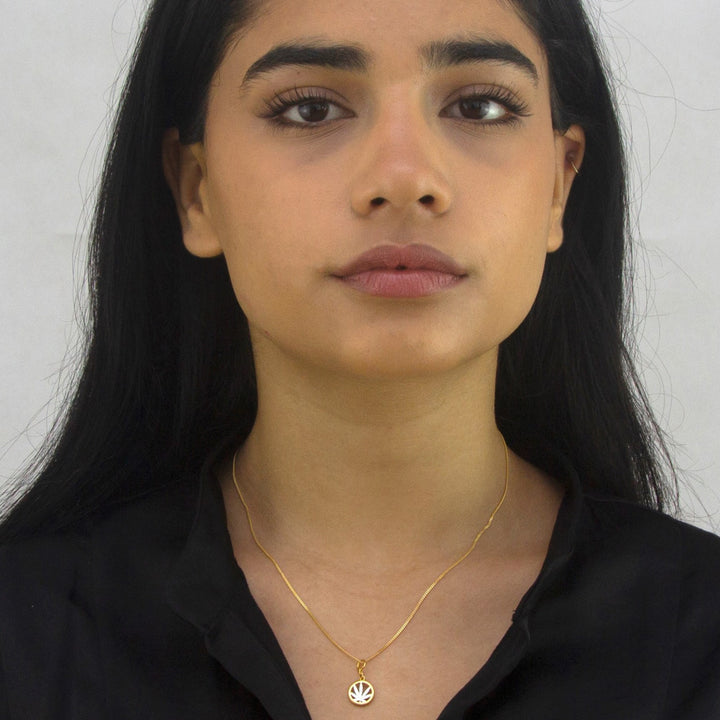 The Mini Happy Leaf Pendant 2Tone Gold/Silver On Gold Chain by True Rocks is a unique accessory. This pendant necklace features a Happy Leaf Mini Pendant cast in Solid Sterling Silver with 18Kt Gold-Plated details. It hangs on an adjustable Gold-Plated chain and can also be worn as an earring.