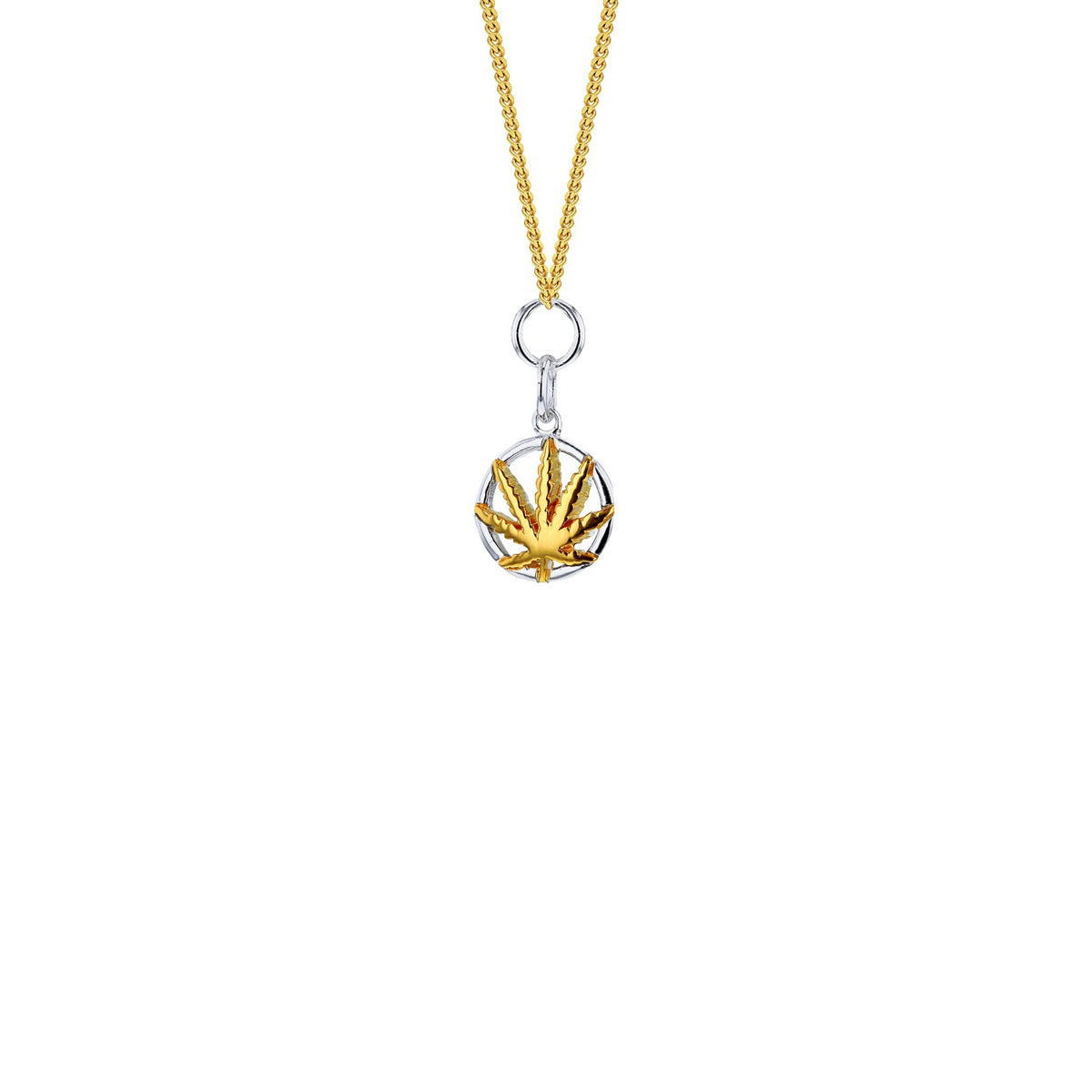 This 2-Tone Mini Happy Leaf Charm by True Rocks is a fun and playful accessory. The leaf charm, with its two-tone sterling silver and 18kt gold-plated detail, is hung on a gold-plated hoop. Sold as a single, this earring is a perfect way to add a unique, stylish, and happy touch to your look. It can also be worn as a pendant on a fine chain for added versatility.
