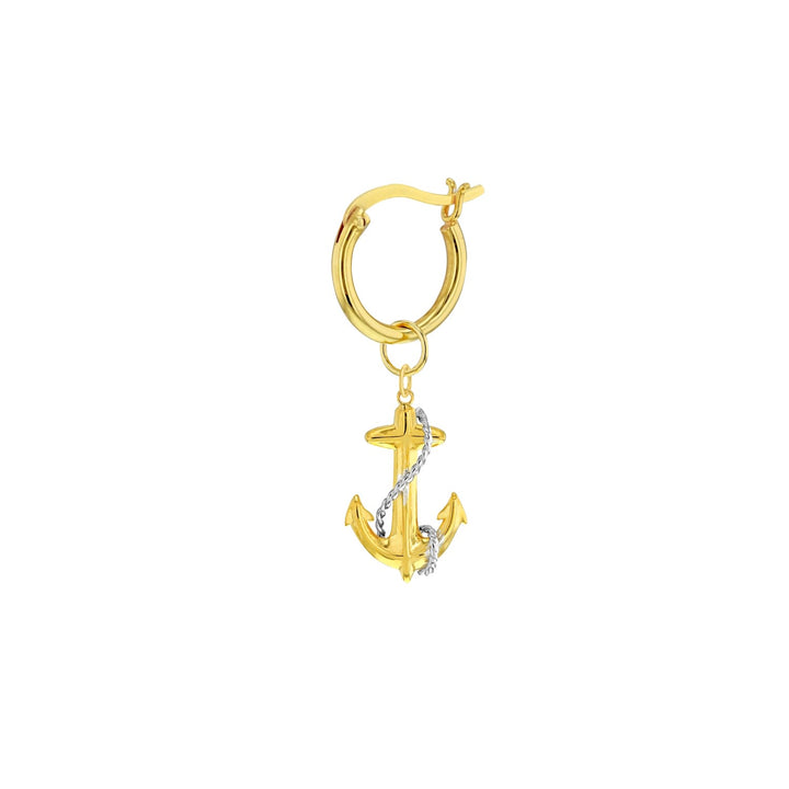 Mini Anchor Charm 2-Tone 18Kt Gold Plate With Silver Detail On Gold Hoop