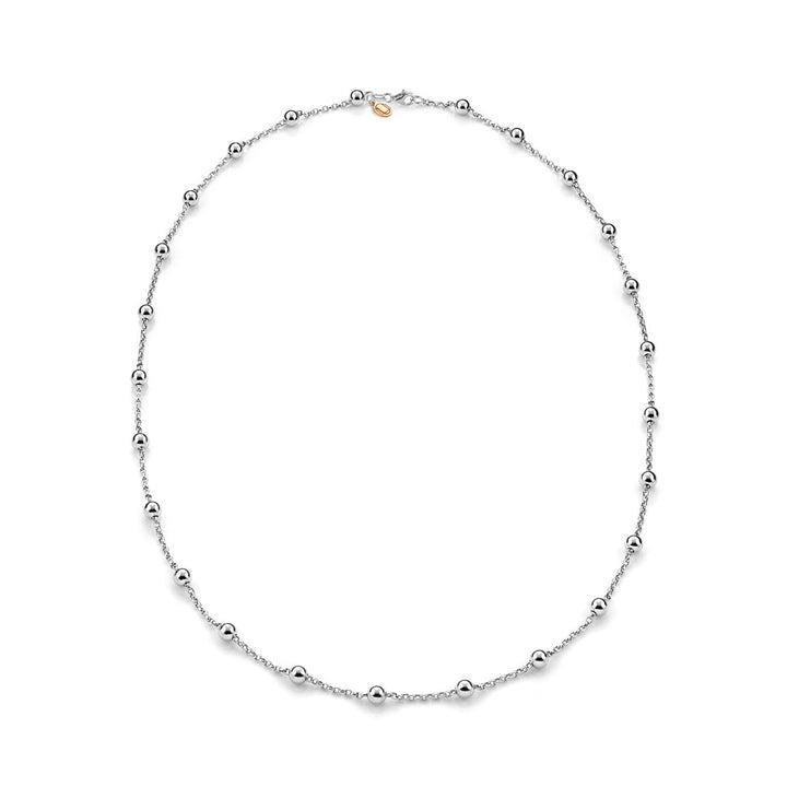 This Modern Necklace In Sterling Silver by Unaloe is a perfect example of essential elegance. Its minimalist yet refined design features delicate polished beads spaced harmoniously along a sterling silver chain, creating a contemporary and chic look. This long necklace is incredibly versatile and can be worn on its own for a subtle statement or layered with other pieces to create a fashionable, on-trend style. It's a durable and radiant piece that will quickly become a go-to in your collection.