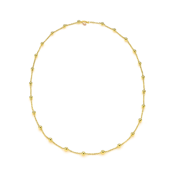 This Modern Necklace by Unaloe is an elegant and versatile accessory. The long, gold-plated sterling silver chain is adorned with delicate polished beads that are harmoniously spaced, creating a minimalist yet refined design. It's perfect for wearing on its own for a touch of subtle elegance or for layering with other jewelry to create a contemporary and on-trend look.