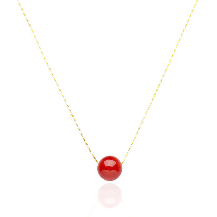 Marine Necklace Elegance – Coral Sphere And Gold-Plated Venetian Silver Chain
