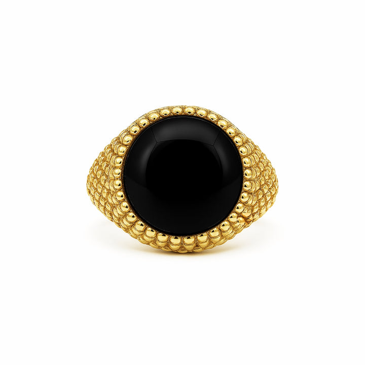 Unisex Adjustable Gold Ring With Black Onyx Bold Beaded Design