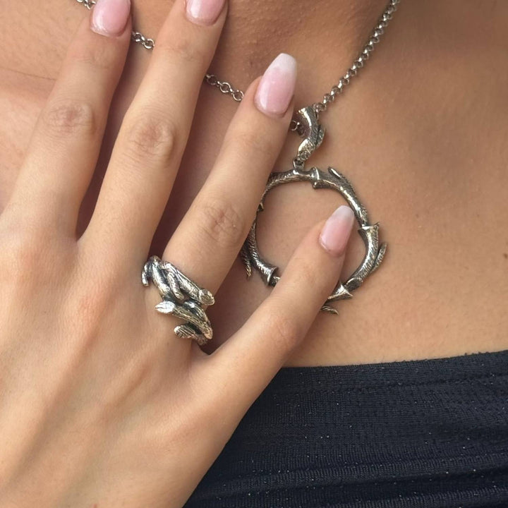 The Arboreal Ring by Unaloe is a unique tribute to the majesty of trees and the journey of life. Crafted from 925 sterling silver, its sculpted surface resembles the bark of ancient trees, symbolizing the eternal cycle of past, present, and future. The ring is made with a traditional burnishing technique that applies a dark patina to the silver, giving it a vintage, authentic charm. It’s a bold and meaningful piece for nature lovers.