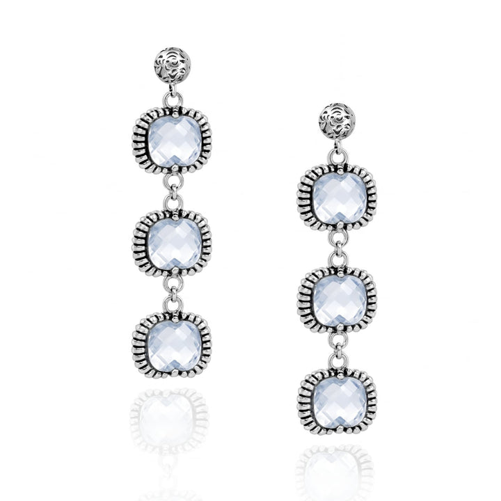 Super Fantasy Earrings Silver– Timeless Elegance With Three Blue Crystal