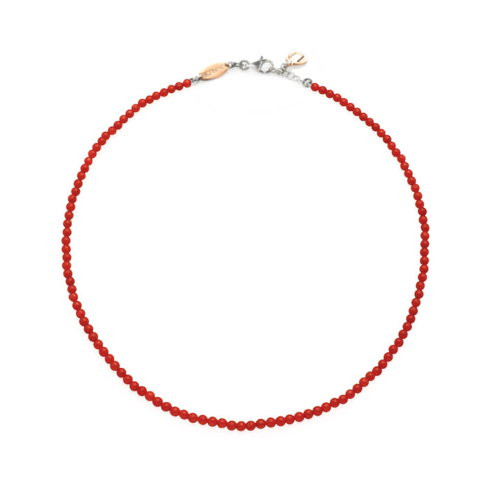 This necklace is handcrafted in Italy from 925 sterling silver. It features a natural Mediterranean red coral bead approximately 2.2 mm in size. It is available with either a sterling silver or an 18k gold-plated clasp.