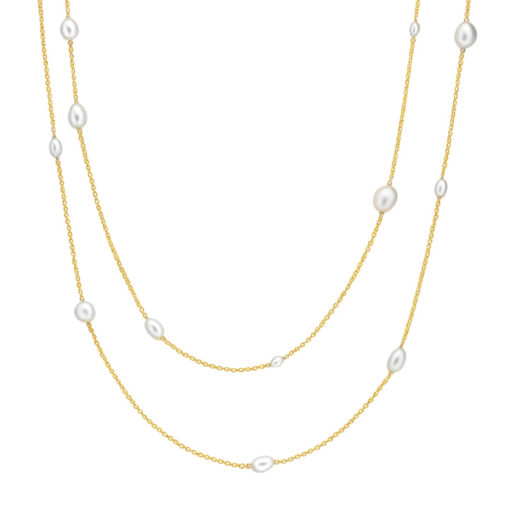 Long Necklace In Sterling Silver-Gold Plated With Mixed Natural Pearls