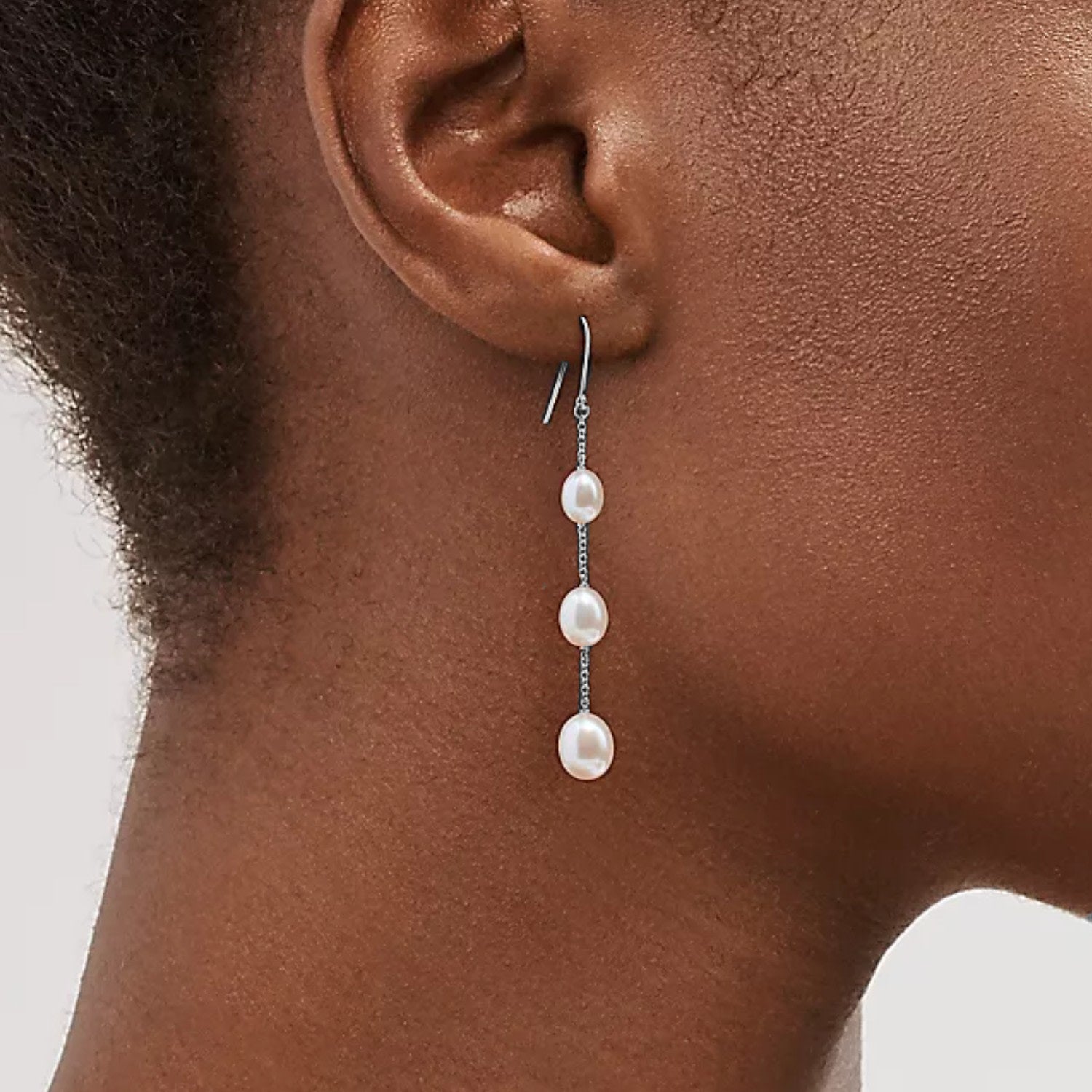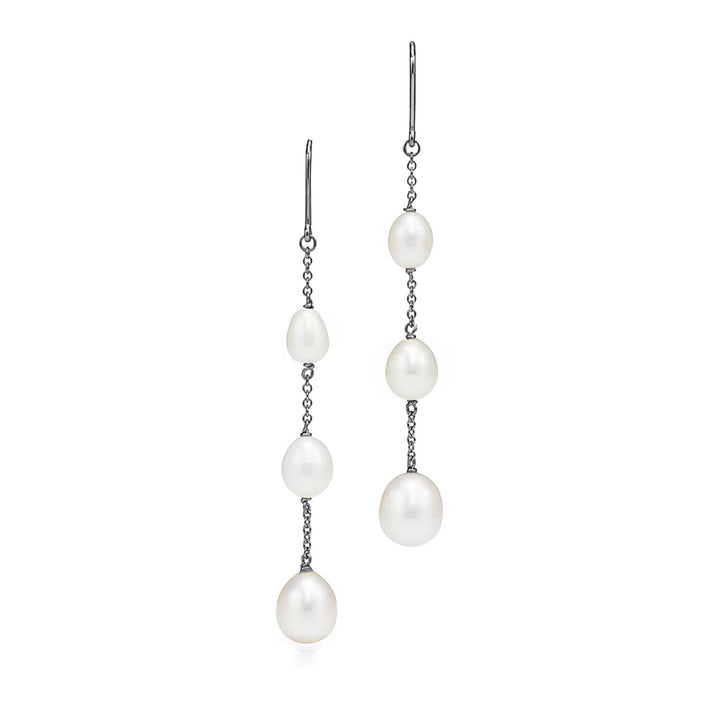 Earrings With Three Dangling Pearls Sterling Silver
