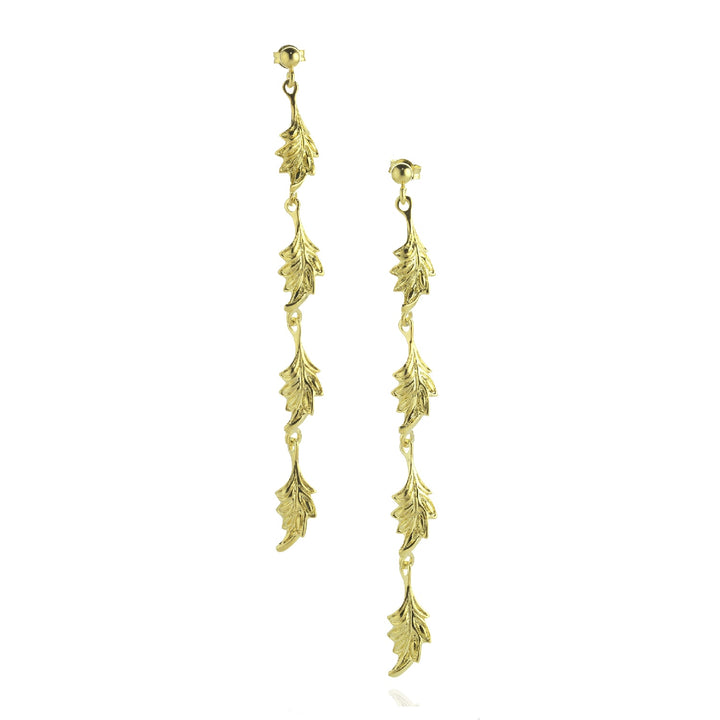 The Sway Unaloe Earrings Gold-Plated are a bohemian and refined accessory. Handmade in Italy from high-quality 925 silver, these drop earrings are composed of four intertwining leaves that create a beautiful sense of movement. Coated in 18k gold over sterling silver, they exude opulence and authenticity. They are a perfect detail to add elegance and a touch of nature-inspired beauty to any outfit.