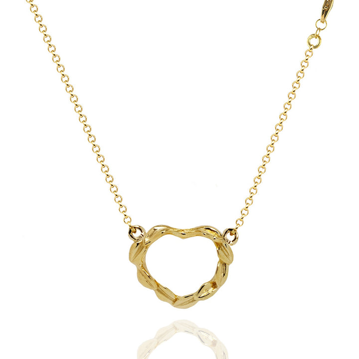 The Belove Heart Necklace by Unaloe is a masterpiece of Italian artistry. This elegant pendant necklace is crafted from 925 sterling silver and features delicate, smooth, interwoven leaves that form a heart. Its distinctive shape harmonizes with any style, making it ideal for wearing alone or as part of a layered look. The gold plating adds a touch of luxury to this timeless symbol of love and femininity.