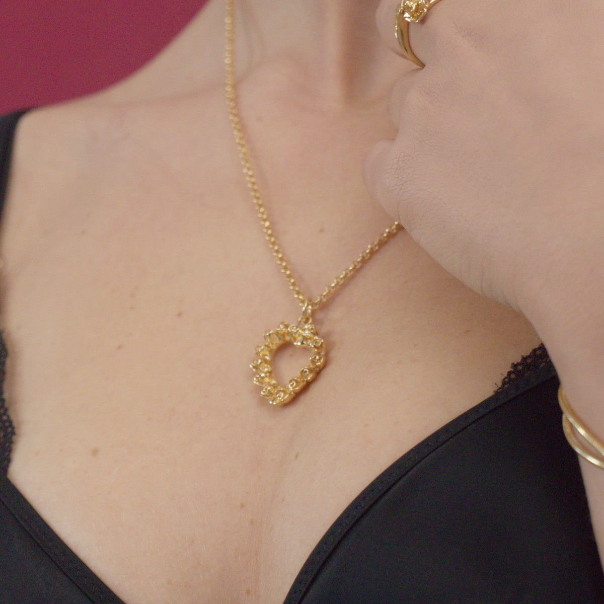 The Loveyou Sterling Silver Gold Vermeil Necklace by Unaloe is a stunning piece that combines opulence with authentic craftsmanship. Handmade in Italy from 925 sterling silver, it features a heart-shaped pendant with Unaloe rosebuds and monograms in elegant rosé plating. The necklace is clad in 18K gold vermeil, giving it a luxurious feel while being a timeless expression of art and elegance.
