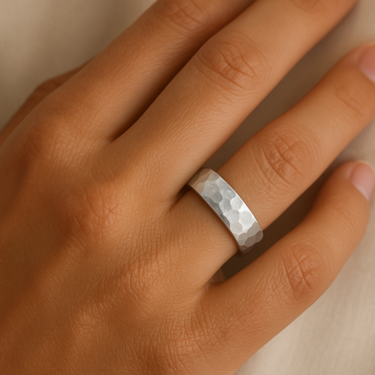 Classic Hammered Silver French Ring For Women