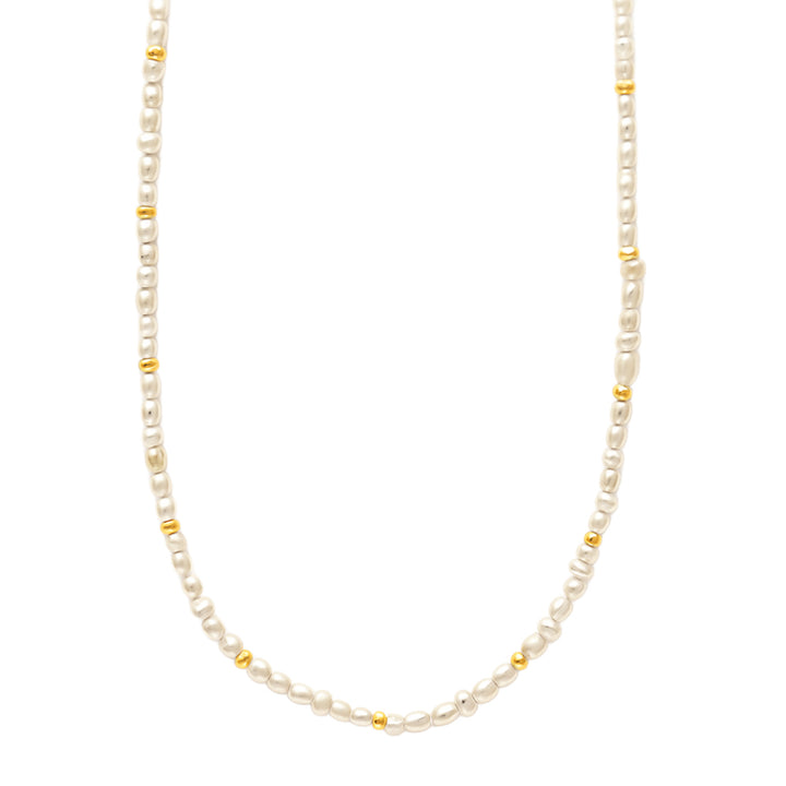 Baroque Natural Pearl Necklace With Gold-Plated Sterling Silver Spheres