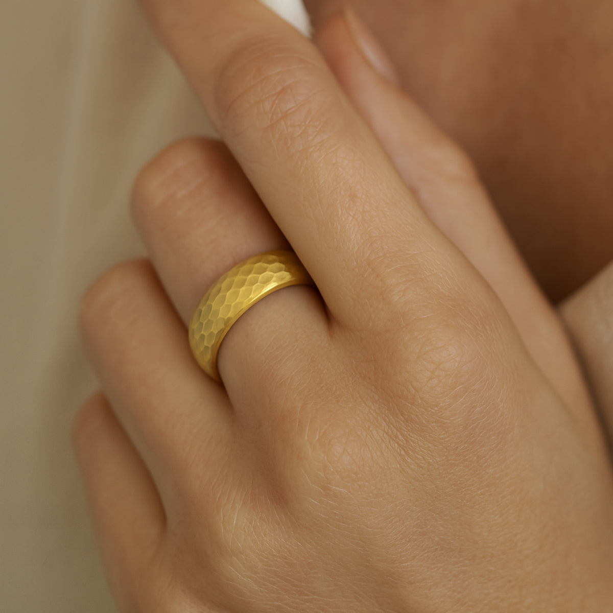 Hammered Domed Silver Band For Women With Gold Plating – Timeless And Stylish