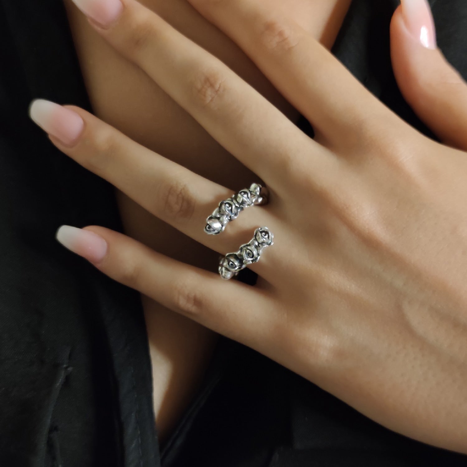 Black Rose Buds Ring Sterling Silver, Handmade, Unaloe Seductive Emotions