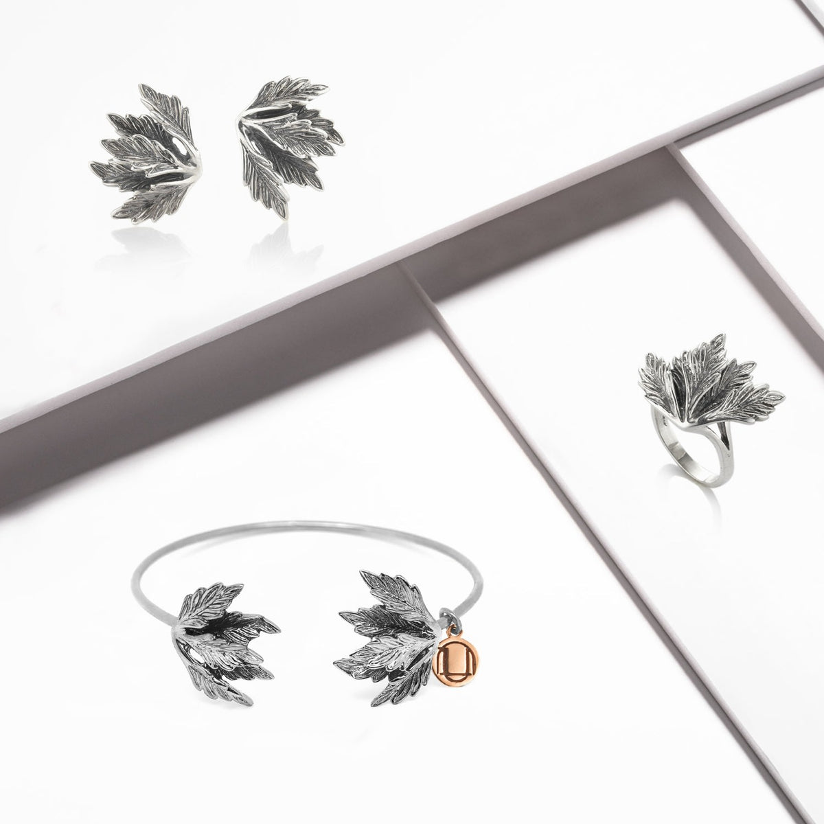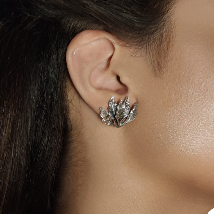 Sterling Silver Leaf Stud Earrings – Shiny And Natural Design – Artisan Jewelry For Women – Unaloe Jewellery For Women