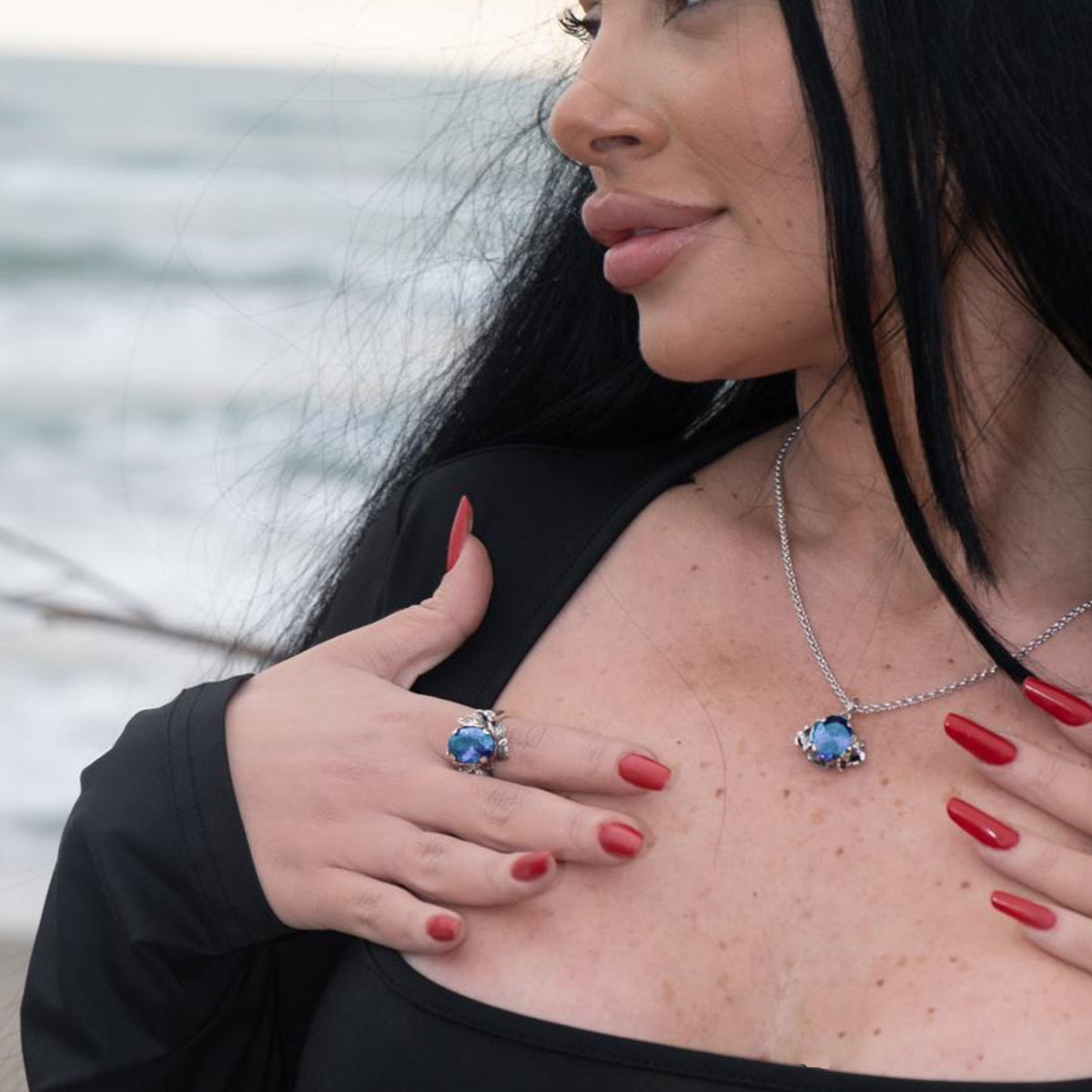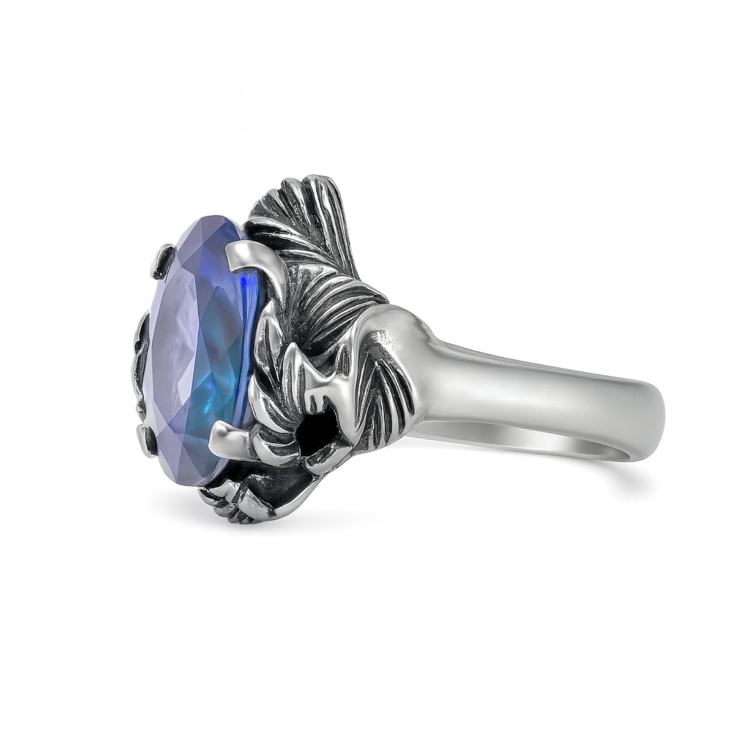 Ring In Sterling Silver With Royal Blue Zirconia – Coleus Ovalis – Unaloe Italian Craftsmanship