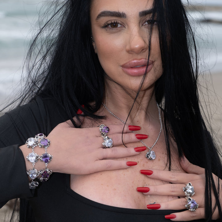 Ring In Sterling Silver With Violet Zirconia – Coleus Ovalis – Unaloe Handmade – Italian Designer Jewelry