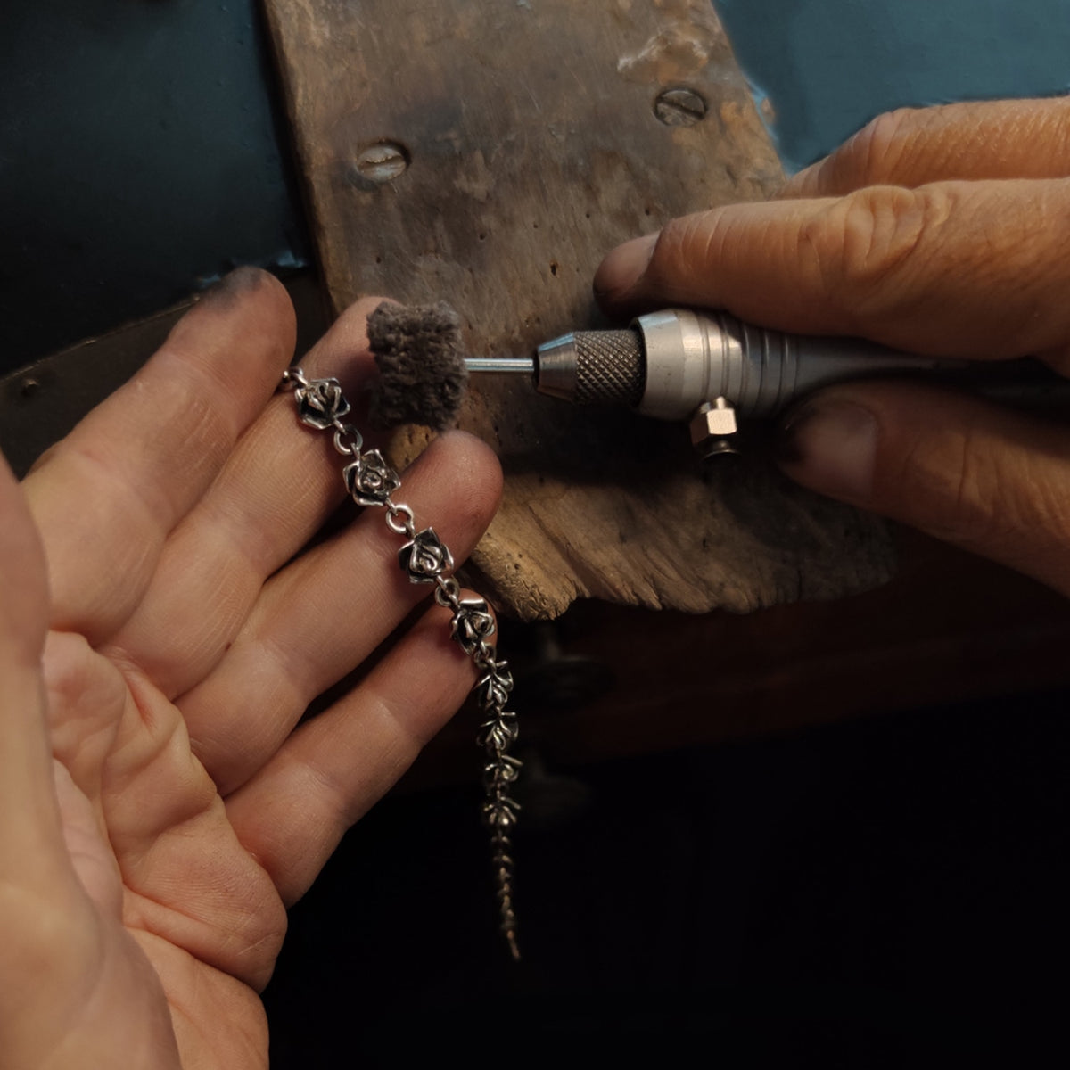 This Bracelet Cariba by Unaloe is a captivating piece that celebrates the strength of your bond with the earth. Crafted with meticulous attention to detail in Italy, it features nine interconnected Unaloe roses, reminding you to always be free. This bracelet embodies the brand's commitment to perfection, with an artisanal brunishing technique that creates a timeless effect of depth and refinement.