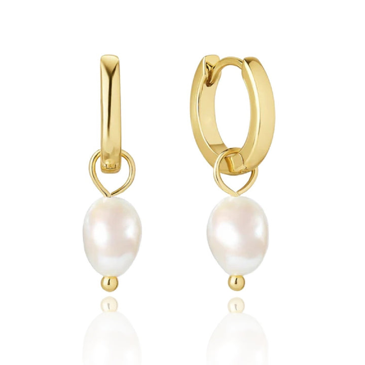 Hoop Earrings With Natural Pearl Pendant In Gold-Plated Sterling Silver