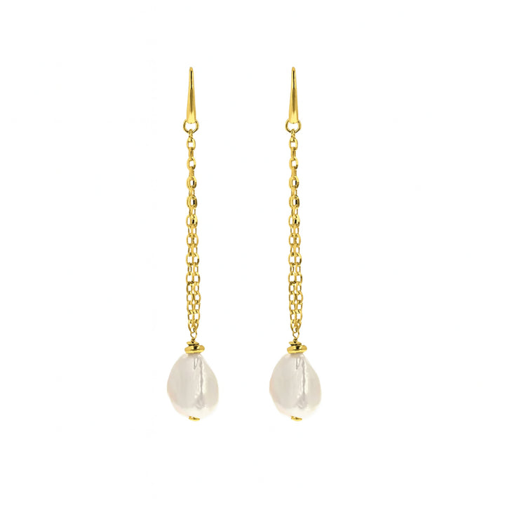 Baroque Freshwater Pearl Drop Earrings With Luminous Chains And Sterling Silver-Gold Plated Hook Clasp