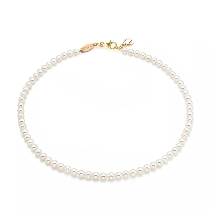 This choker is handmade in Italy from 925 sterling silver with a gold-plated finish. It is embellished with natural pearls and Unaloe rose monograms. The piece is nickel-free and complies with EU directives.