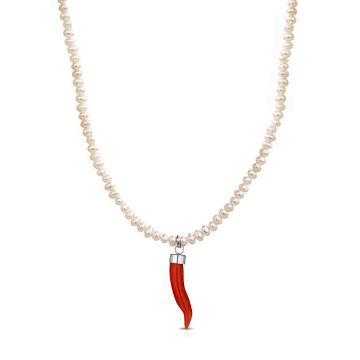 Baroque Pearl Necklace With Silver Coral Cornicello