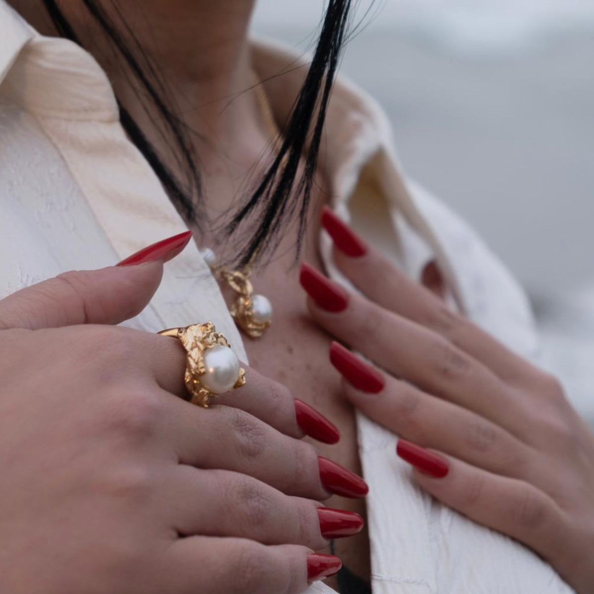 This ring is handcrafted in Italy from 925 sterling silver with an 18k yellow gold plating. It features a natural pearl and is nickel-free.