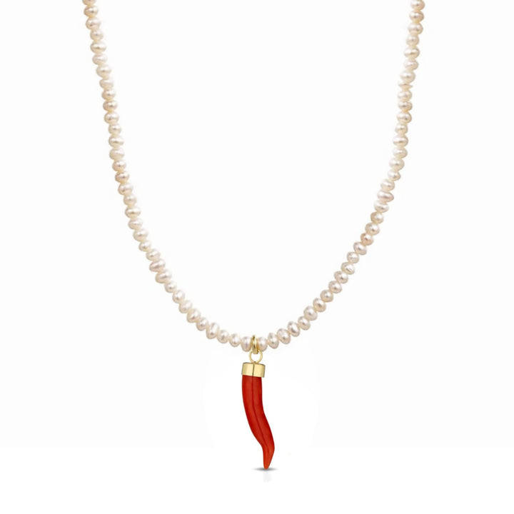 Baroque Pearl Necklace With Gold-Plated Silver Coral Cornicello