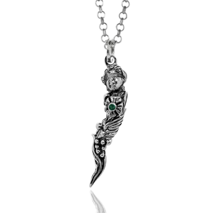 Sterling Silver Necklace With Goddess Of Fortune With Natural Emerald