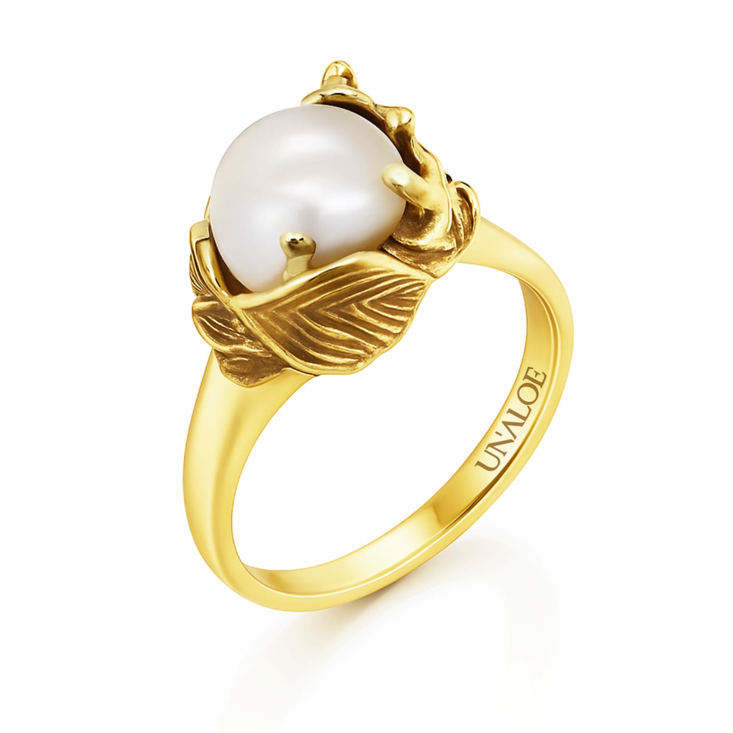 Sterling Silver-Gold-Plated Ring With Pearl Coleus– Unaloe Handmade Jewelry For Women