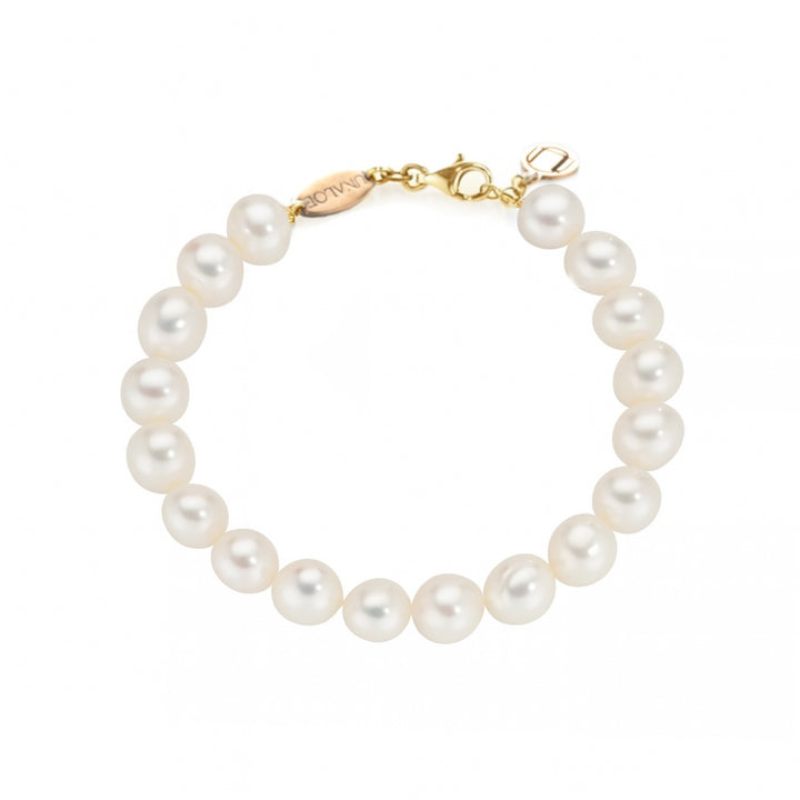 This bracelet is made of natural pearls and 925 sterling silver with a gold-plated finish. It is nickel-free.