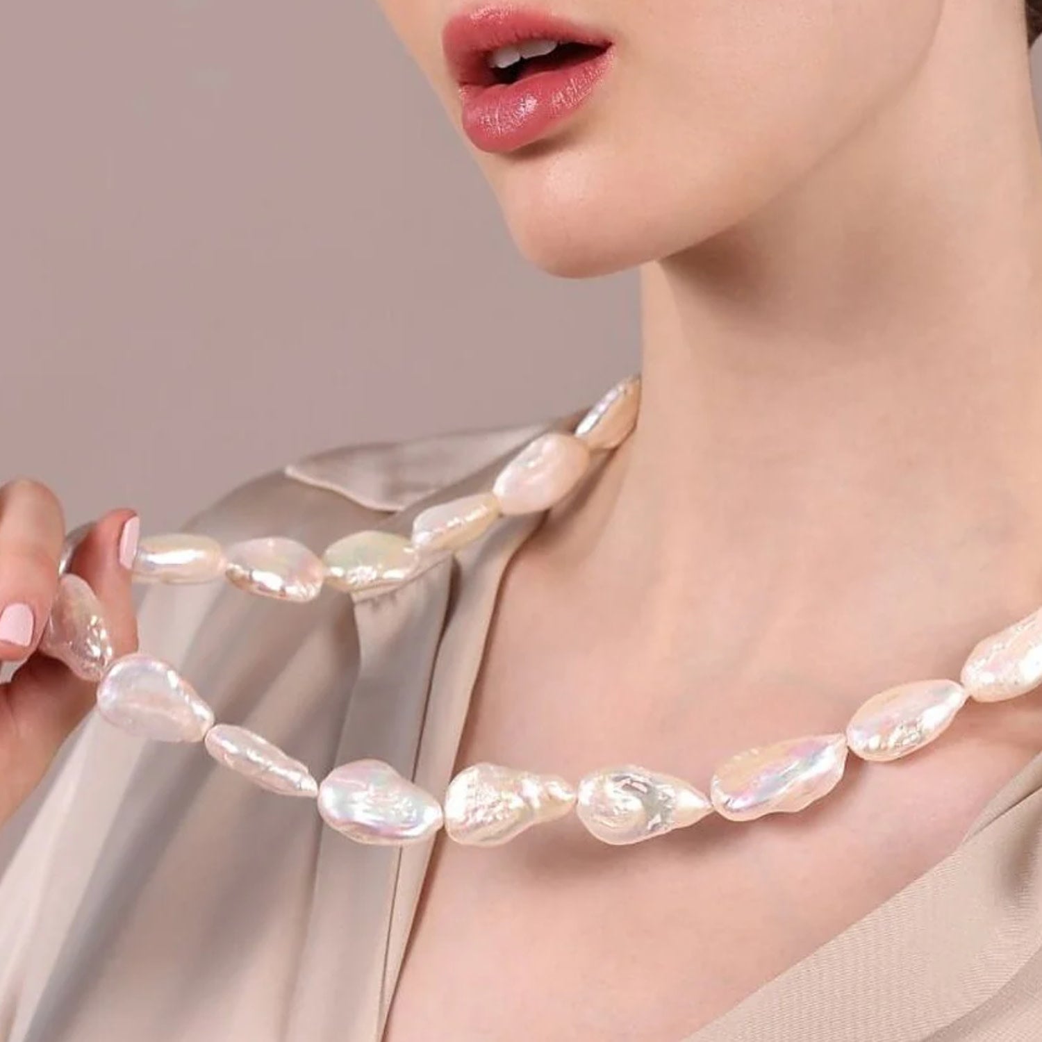 Elegant Long Necklace With Freshwater Cultured Baroque Pearls And Sterling Silver Lobster Clasp