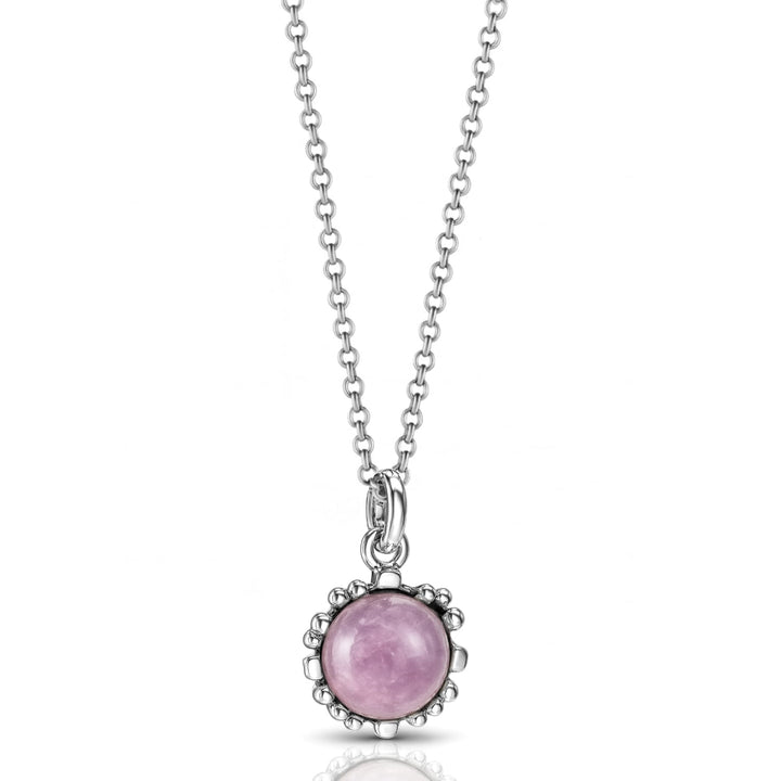 The Ribes Necklace is a charming pendant necklace that beautifully symbolizes the fabric of life. Handcrafted in Italy from sterling silver, its design features delicate beads that represent the cherished moments of our journey. At the heart of the necklace is a captivating natural kunzite stone. Known as the "stone of love and emotion," kunzite symbolizes emotional healing, kindness, and empathy.
