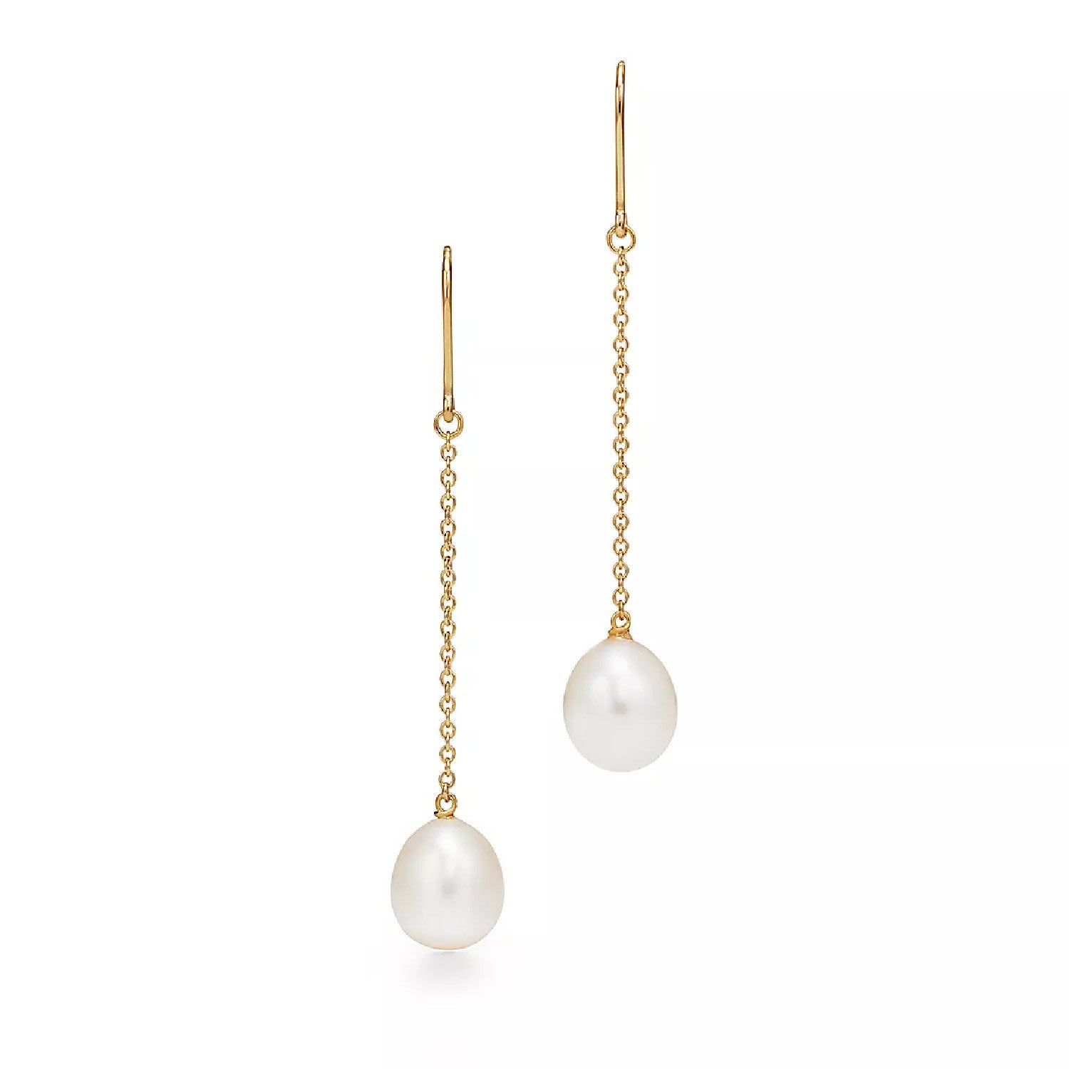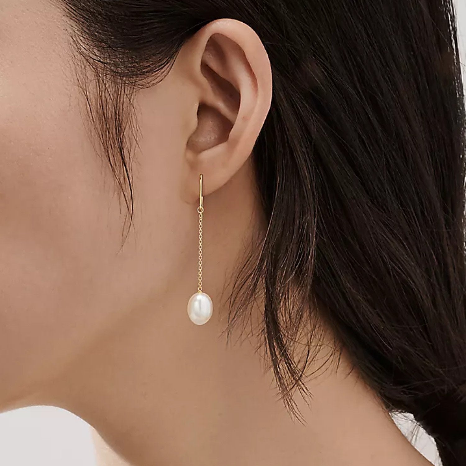 Earrings With Gold-Plated Sterling Silver Chain And Dangling Natural Pearl