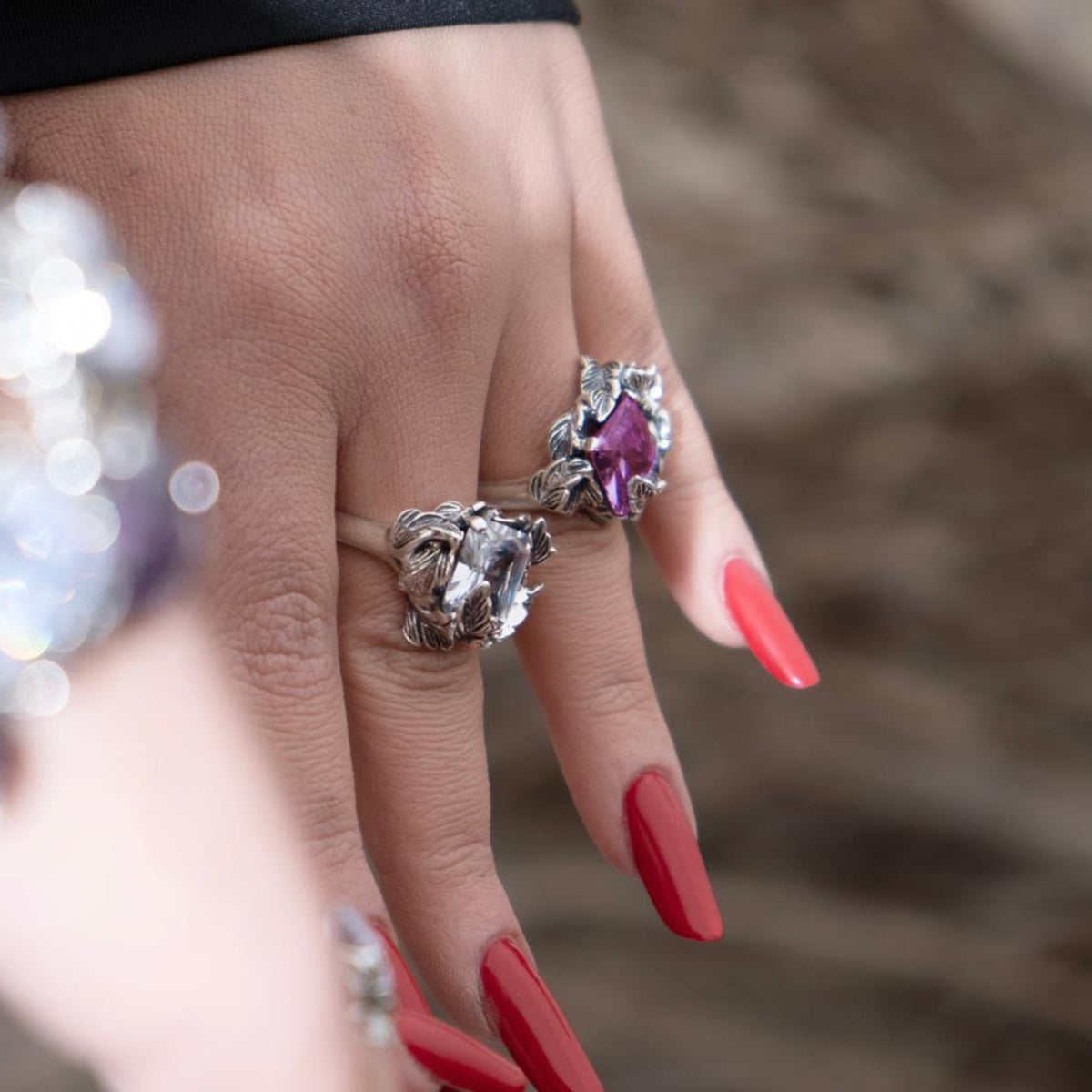 Ring In Sterling Silver With Pink Zirconia – Coleus Quadratus - Unaloe Handmade Made In Italy
